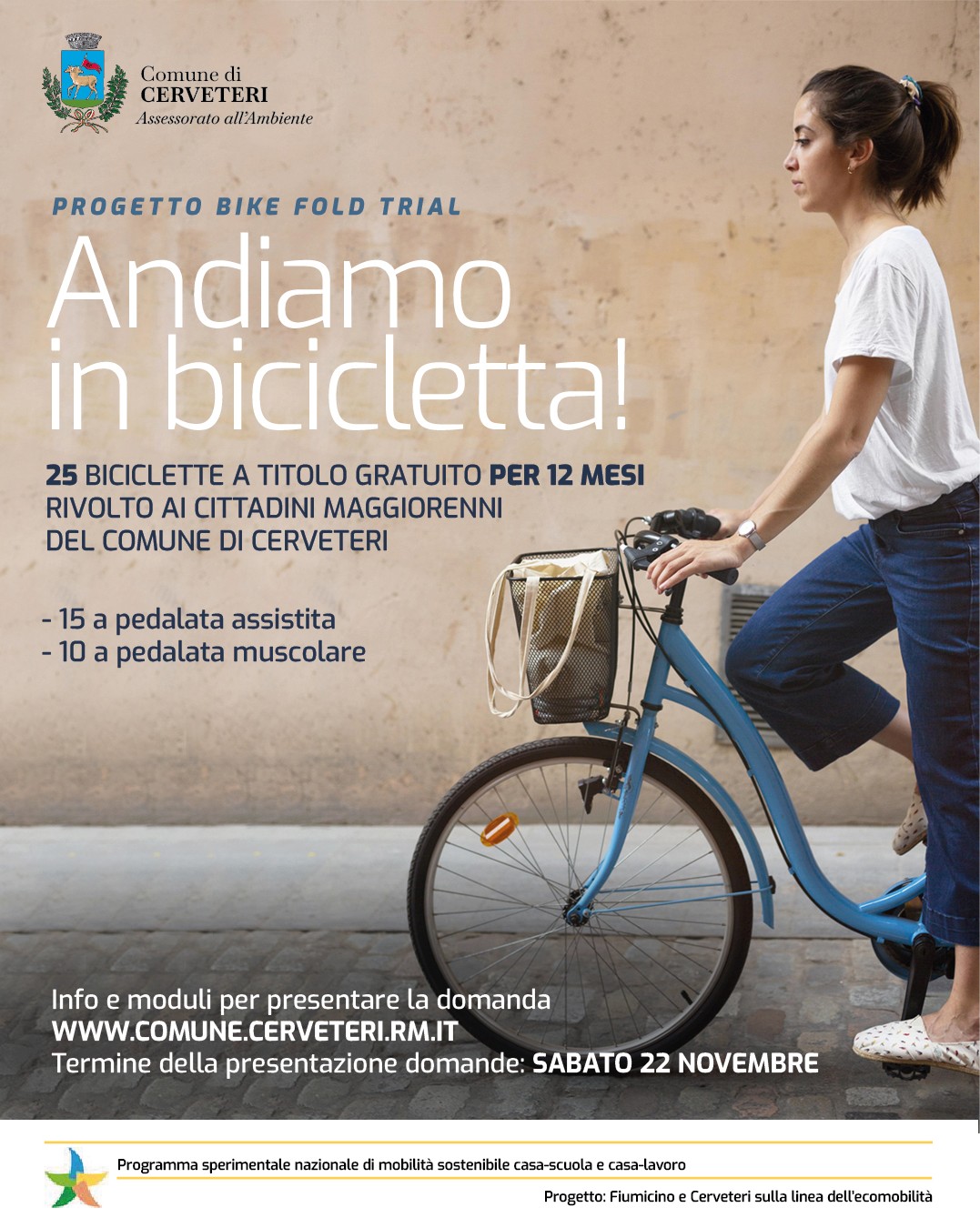 La documentazione sopra indicata andrà trasmessa entro e non oltre la data del 22 novembre 2025, all'indirizzo: comunecerveteri@pec.it riportando nell’oggetto della pec la seguente dicitura: “ASSEGNAZIONE IN USO GRATUITO DI N.25  BICICLETTE DI CUI 15 A PEDALATA ASSISTITA E 10 A PEDALATA MUSCOLARE PROGETTO BIKE FOLD TRIAL” o con deposito cartaceo presso l'Ufficio Protocollo negli uffici nel Parco della Legnara.