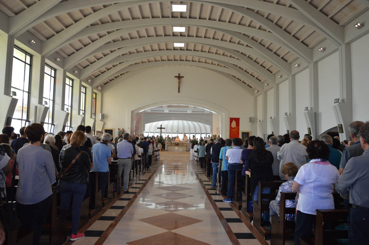 I temi della progettazione sono due: il cerchio ed il quadrato. Il cerchio, presente nella copertura a volta dell’aula liturgica, nella forma absidale della cappella feriale e nel Battistero, come pure negli altri elementi costitutivi dell’architettura interna, simboleggia la perfezione e la volta celeste. Il modulo costruttivo si basa sulla geometria del quadrato che simboleggia la terra, i quattro elementi della natura e l’intelletto razionale.