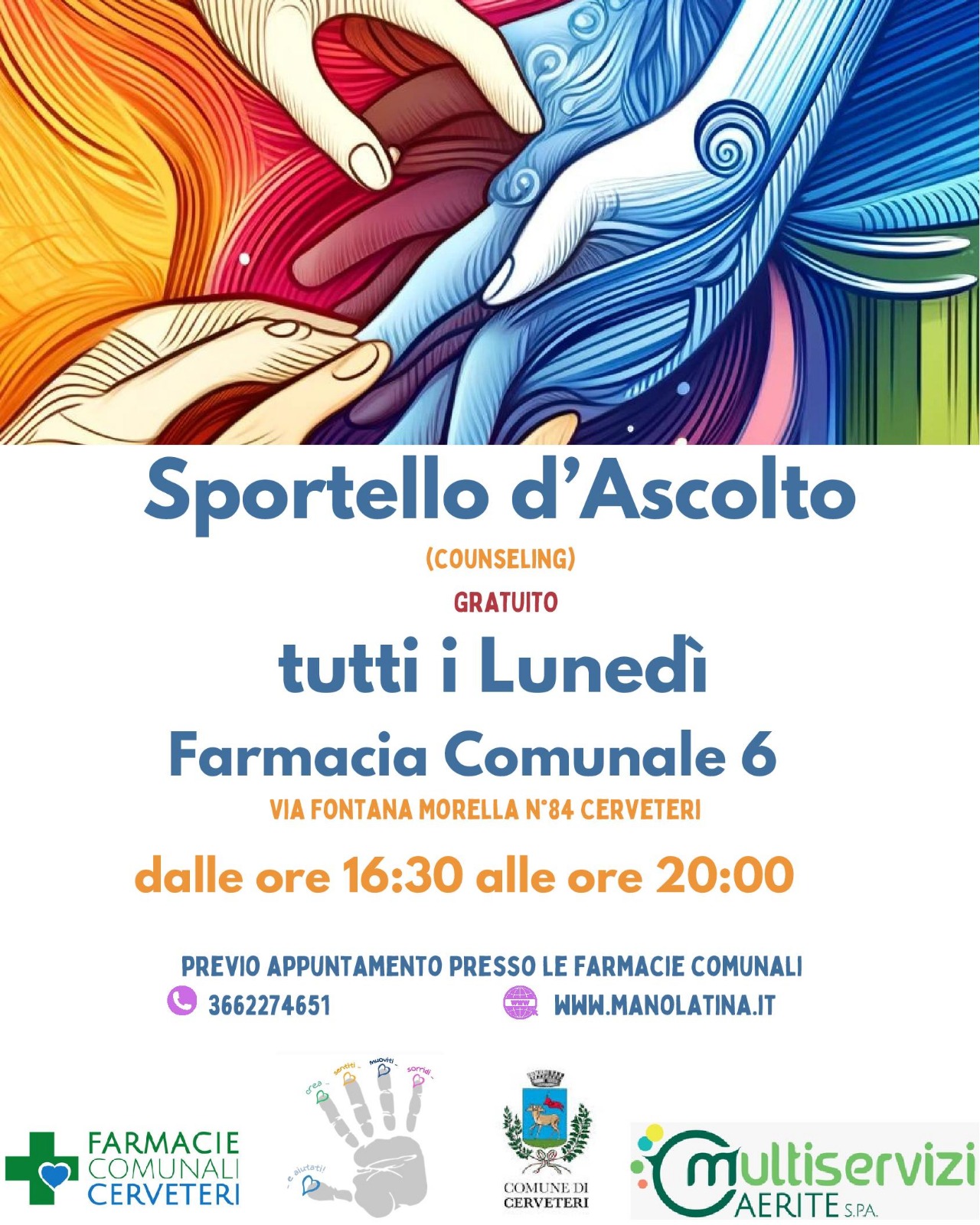 Nasce lo “Sportello d’Ascolto Comunale” presso la Farmacia N.6, un servizio totalmente gratuito che sarà aperto ogni lunedì dalle ore 16:30 alle ore 20:00.